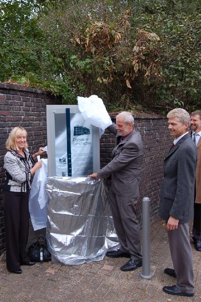 Die feierliche Enthüllung durch Frau Dr. Monika Anders mit Hilfe von Lambert Lütkenhorst.