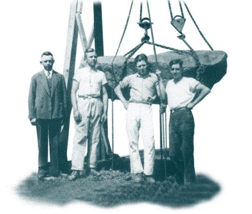 Der etwa 65 Zentner schwere Stein wird aus dem Kanal geborgen und findet im nördlichen Bereich des Westwalls seinen vorläufigen Platz. |