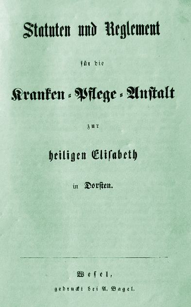 Mit der Eröffnung der „Kranken-Pflege-Anstalt zur hl. Elisabeth“ übernehmen die Franziskanerinnen aus St. Mauritz die Pflege der Patienten und den hauswirtschaftlichen Dienst. | |