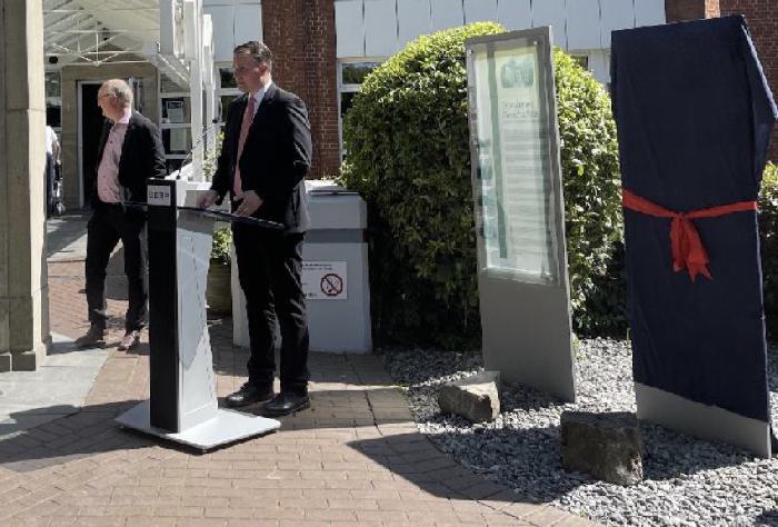 Diese Enthüllung der 47. Station in Dorsten bedeutete eine echte Premiere: Denn erstmalig stehen an einem Standort in Dorsten gleich zwei Geschichtsstationen einträchtig nebeneinander.