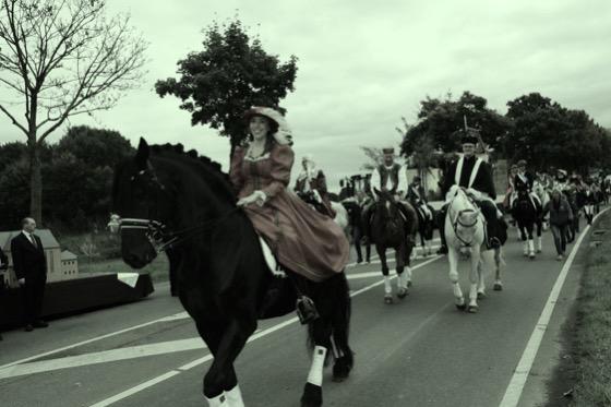 Beginn des Festumzuges am 8. Oktober 2017: Reiterinnen und Reiter in historischen Kostümen führen den Zug an. |