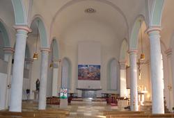 Die zunächst als Provisorium errichtete und 1974 erweiterte Heilig-Geist-Kirche bildet das Zentrum der evangelischen Christen. | |