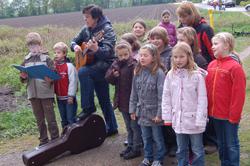 Zur Einstimmung sangen Grundschulkinder zur Gitarre.