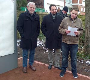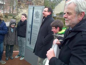 „Ich habe mich noch kurz vor meiner Ansprache informiert, wie viele es denn jetzt genau sind,“ sagte Lütkenhorst, waltete dann seines Amtes und übergab mit einer kurzen Ansprache offiziell die Geschichtsstation mit Namen „Stadtbefestigung“ vor der Turmruine am Westwall an den Verein für Orts- und Heimatkunde. Dieser hat die Stele vor der Ruine anlässlich seines 125-jährigen Bestehens, das er derzeit begeht, aus eigener Tasche finanziert.