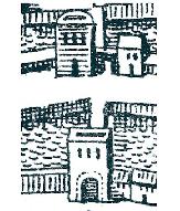 Mit der Stadterhebung durch den Landesherrn, den Kölner Erzbischof Konrad v. Hochstaden, erhalten die Dorstener Bürger das Recht, ihre Stadt durch eine Stadtbefestigung zu schützen. 1260 ist die ringförmige Wehranlage aus Palisaden und Wassergraben fertiggestellt. Drei Stadttore unterbrechen den mittelalterlichen Mauerring: Das Lippetor (N) und das Essener Tor (S) liegen auf einer Handelsstraße von Essen nach Münster. Das Recklinghäuser Tor (O) bietet eine Anbindung an das Vest und die Stadt Recklinghausen. | |