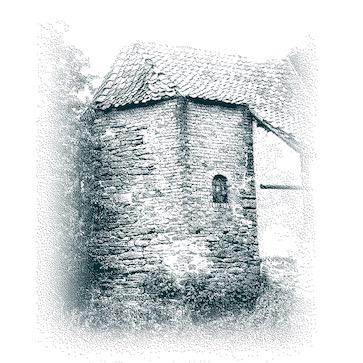 An der Nordseite des sechseckigen Turms entsteht ein Wohnhaus. In Volieren vor dem Turm züchtet der Hausbesitzer Wellensittiche. So wird der Turm im Volksmund auch „Papageienhaus” genannt. |
