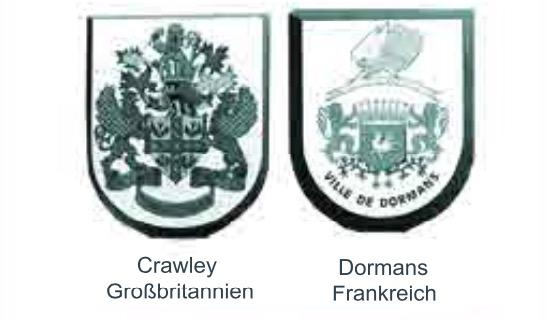 Nachdem der Stadtrat den Beschluss gefasst hat, sich um eine englische Partnerstadt zu bemühen, vermittelt der „Rat der Gemeinden und Regionen Europas“ (RGRE) die Städtepartnerschaft mit Crawley. | |
