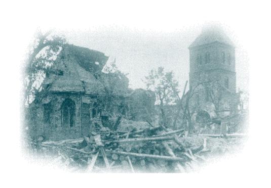 Durch einen Bombenangriff amerikanischer Flieger werden am 22. März die Kirche und 15 Häuser im Ortskern total zerstört. Bei dem kriegerischen Angriff sind unter der Zivilbevölkerung 23 Todesopfer zu beklagen. | |