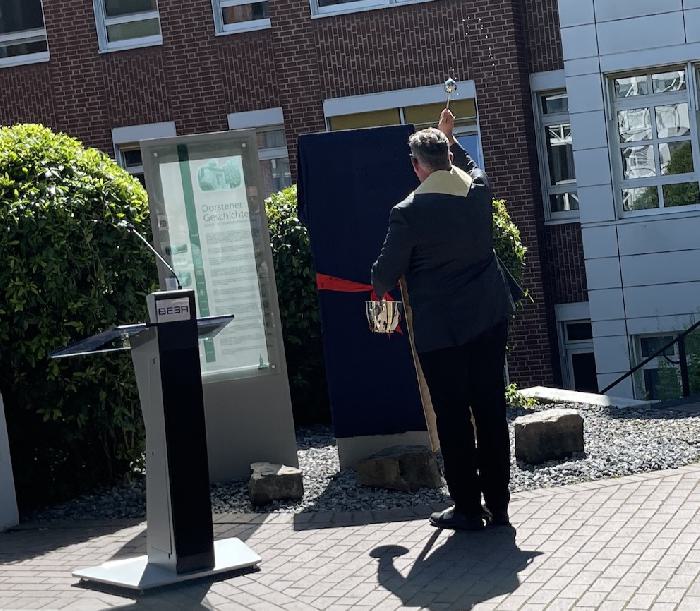 Nach einer besonderen Anerkennung der ehrwürdigen Schwestern übergab er das Wort an Doktor Stephan Rüdiger, den Dechanten der Kirchengemeinde Sankt Agatha. Im Anschluss an eine Andacht und gemeinsames Singen segnete der Pfarrer die Geschichtsstation.